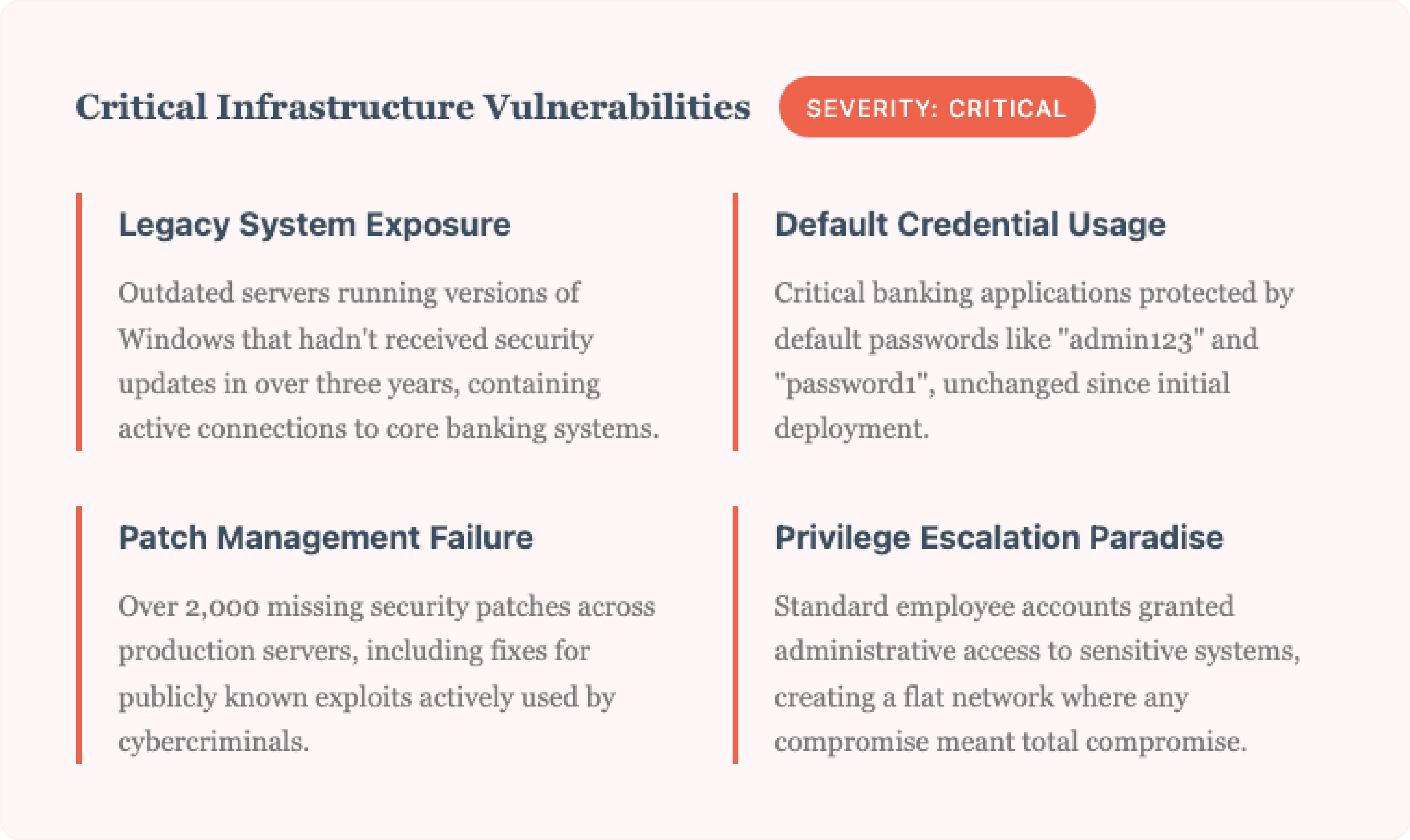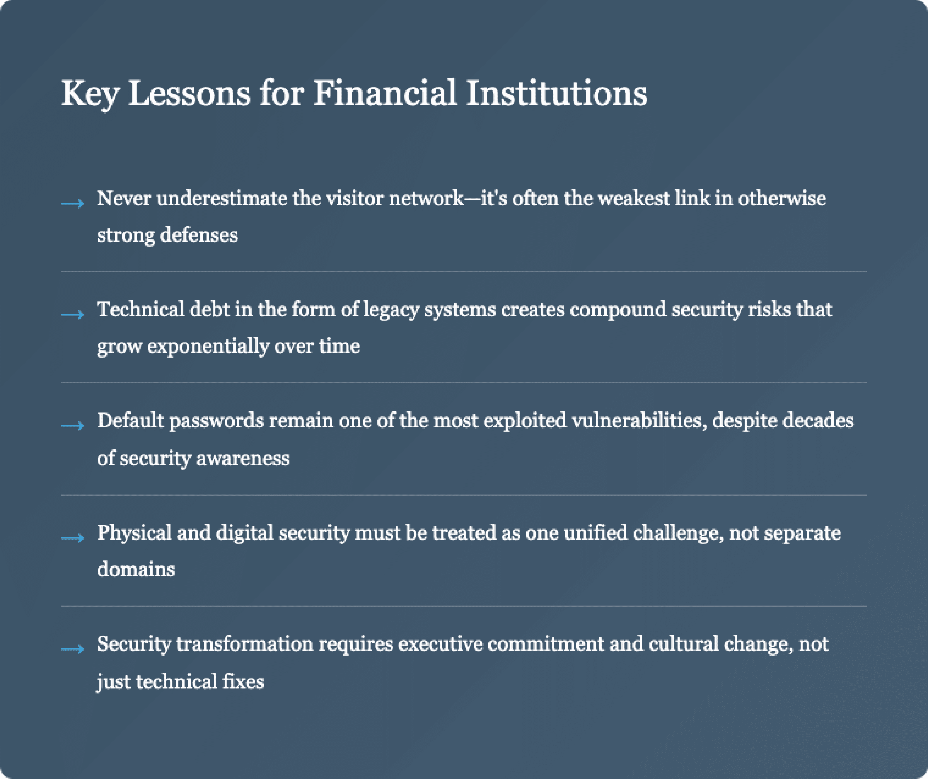 For other financial institutions, the message is clear: comprehensive security assessments, while sometimes revealing uncomfortable truths, provide the roadmap for transformation. In an era where cyber threats grow more sophisticated daily, the question isn't whether you can afford to conduct such assessments—it's whether you can afford not to.