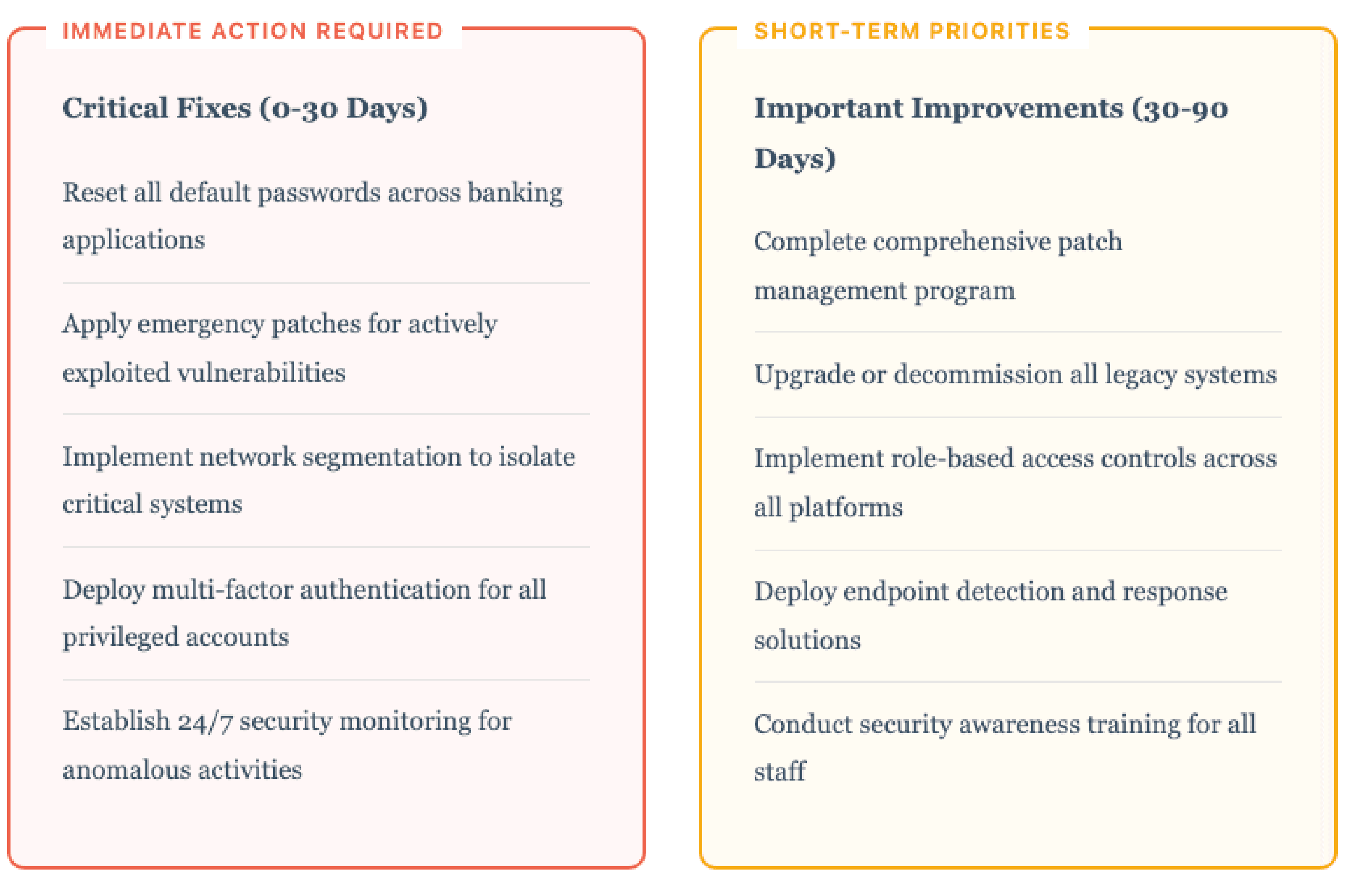 We worked with the bank to develop a remediation roadmap that balanced urgency with operational stability: